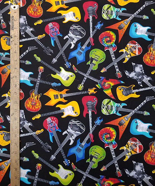 "3462 TOSSED ELECTRIC GUITAR" Pattern Cotton Fabric 1/2 Yard New and Rare
