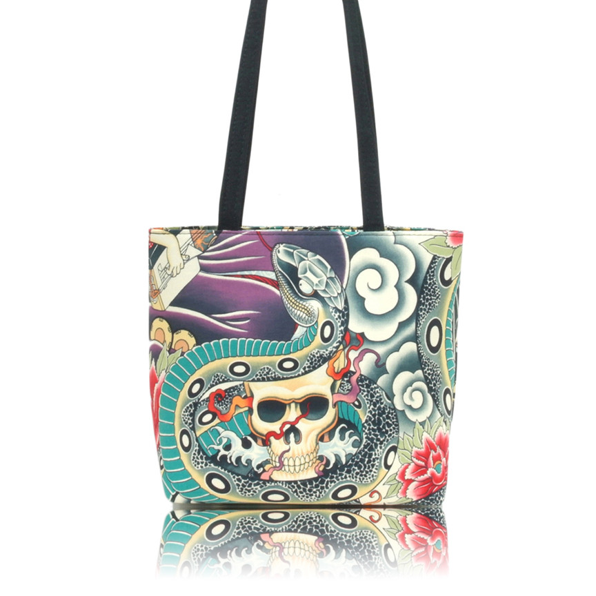 BUCKET STYLE BAG WITH ZEN CHARMERS TATTOO PATTERN